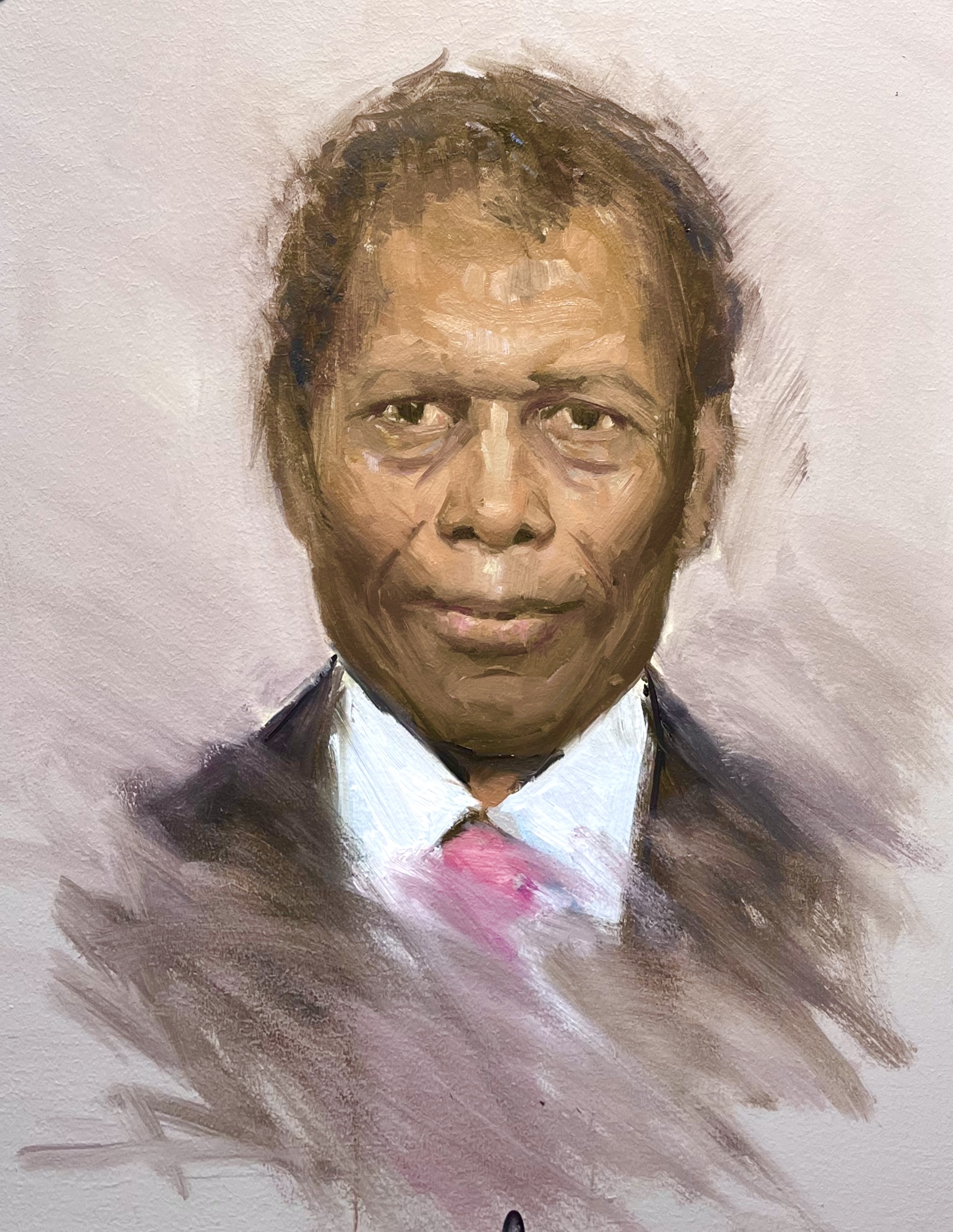 We watched a 10 min interview of Sidney Poitier. Besides being really moving it gives us a sense of his character and values. We hear his words and the resonance and feeling in his voice . This gives us valuable insight for our portrait. He overcame many personal and societal obstacle He paved the way for Black Americans in film and he did it all with dignity and honor.