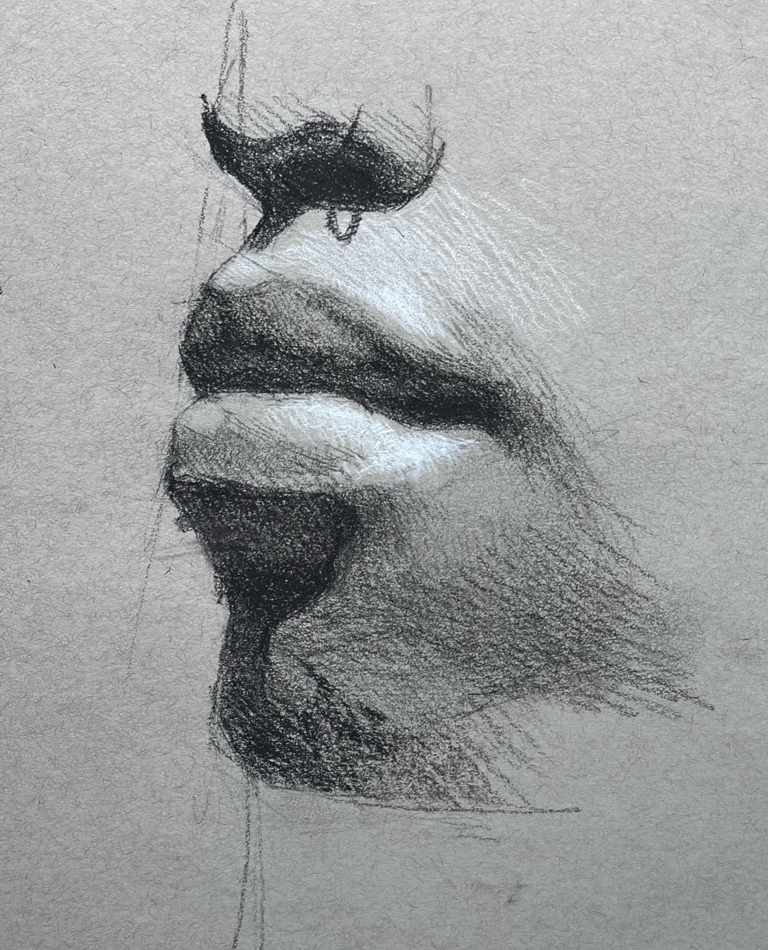 Finish your drawing of the mouth, follow along with the video if that is helpful and pay close attention to all of the variation in the values and edges.