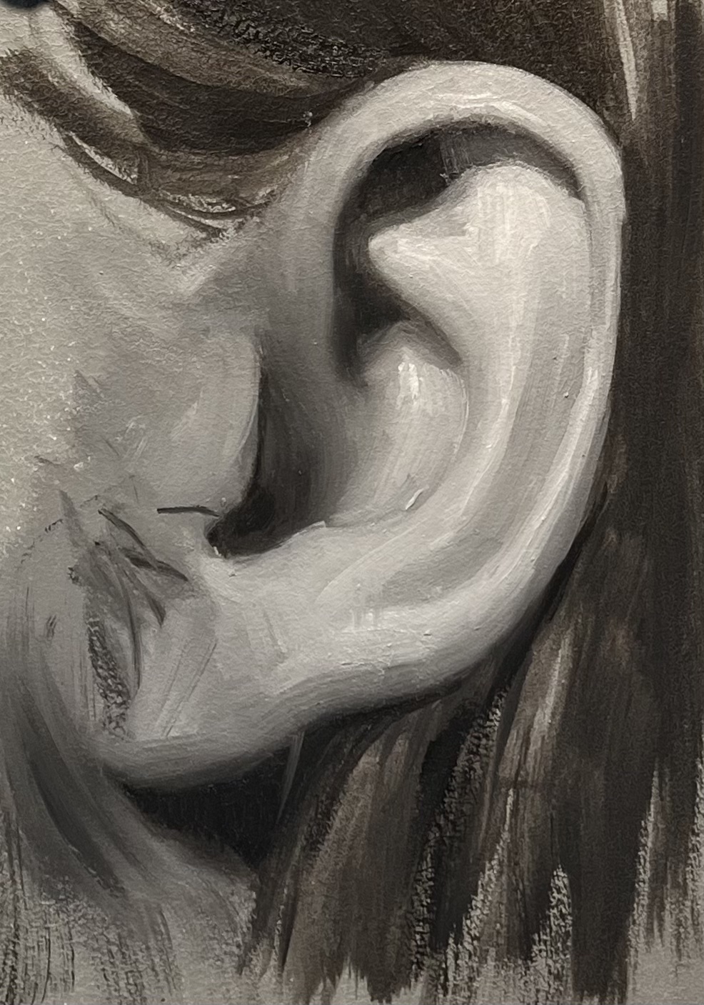 In this session we painted the ear by breaking it down into steps. Follow along with the video to complete this exercise. Bear in mind that it is the process that makes what painting this complex form a manageable experience.