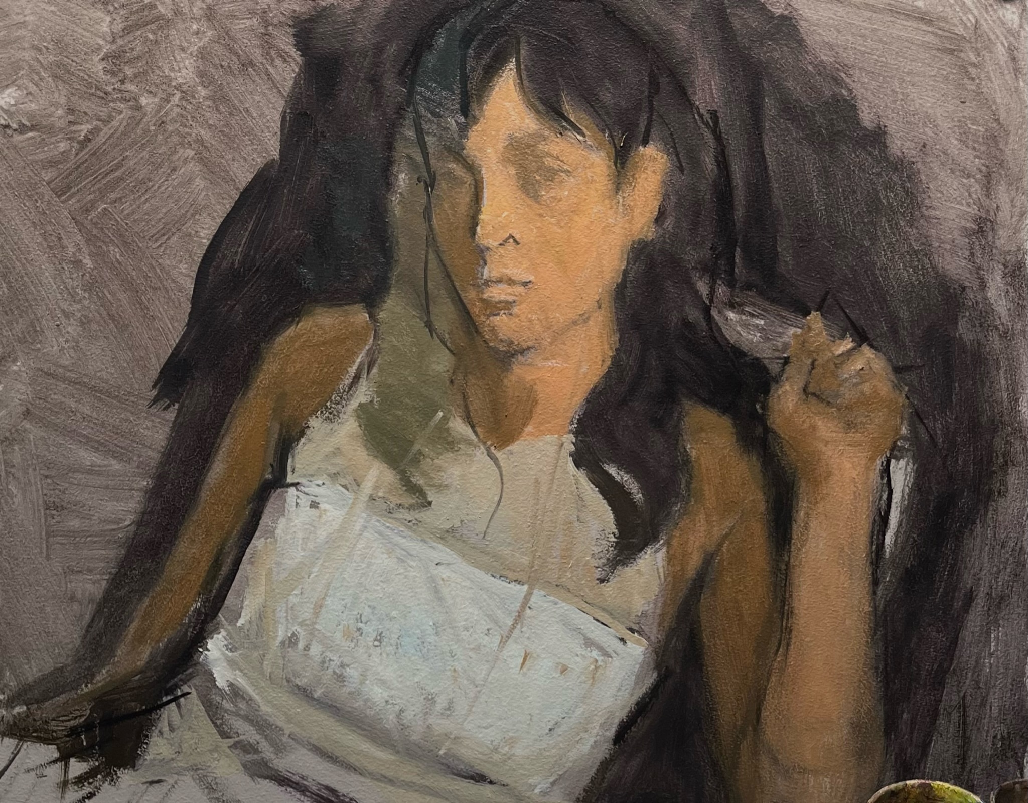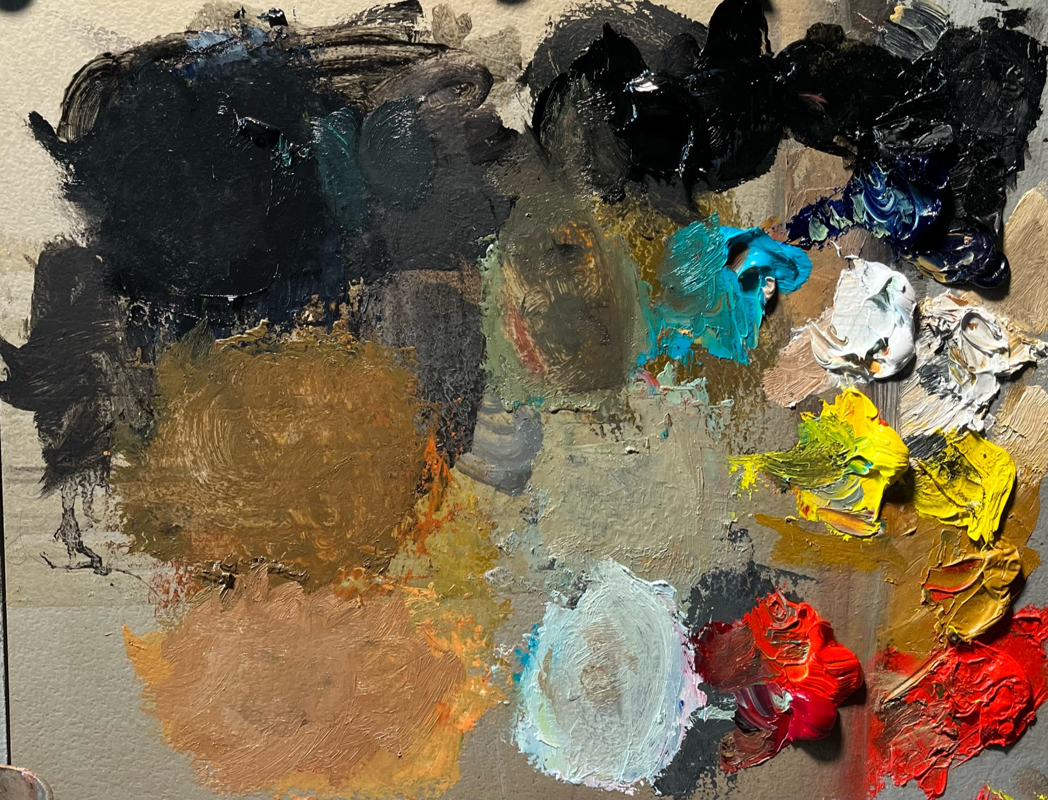 Assignment:Today we translated the values into colors and blocked in the paintingSee if you can get your painting as far as mine. Stick with the main pools of colors void mixing variations, we will go into that next weekWeek 2 Demo Painting Oil on Panel11"x14"