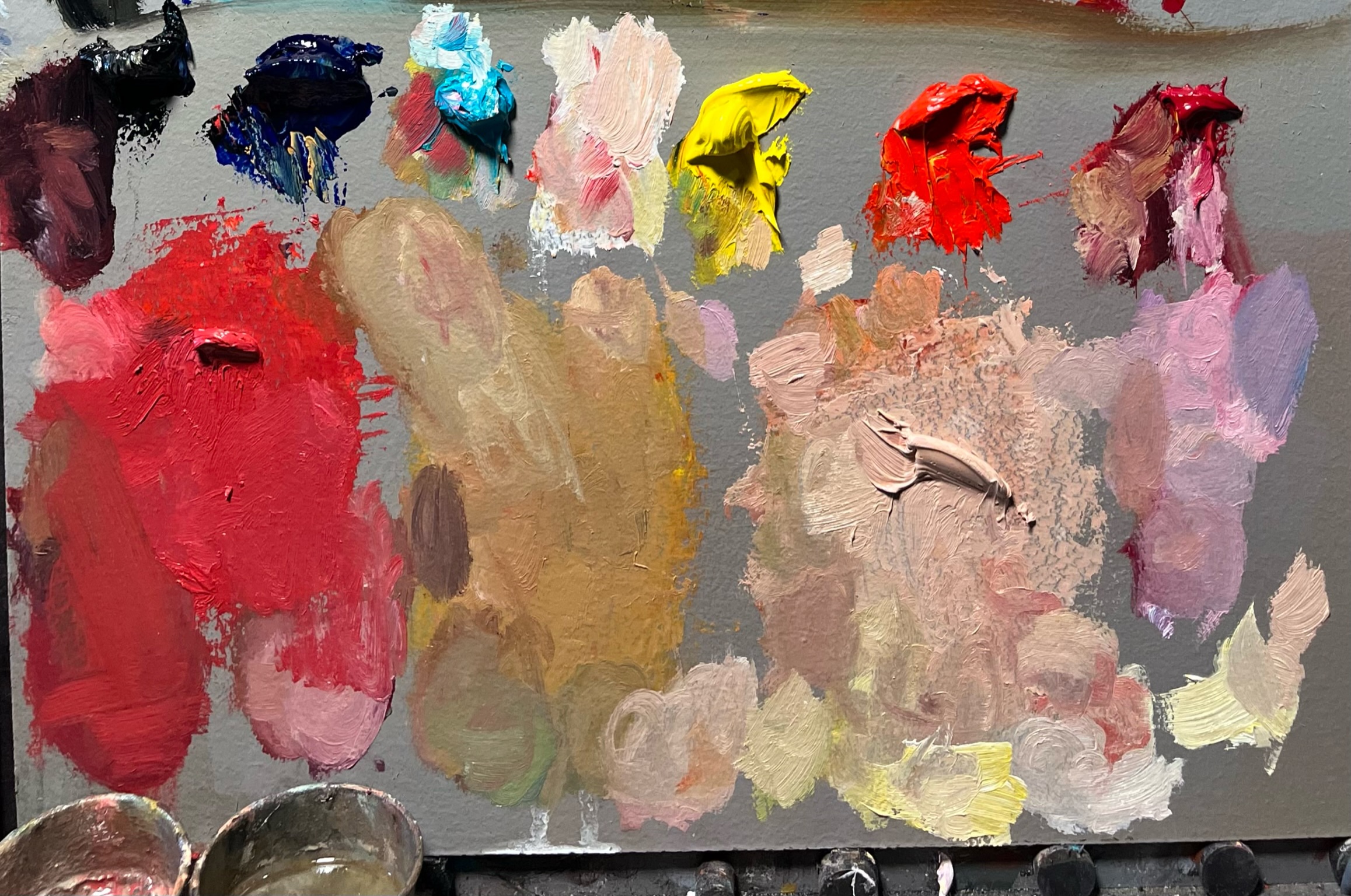 We broke down the values and colors on the iPad and then we carefully mixed our pools of color and block them in. Once blocked in, then we went into the color variations. Trace your image and work in the same fashion as we did in the demo. We have eliminated the drawing issues so this gives you the time to get the colors and values just right.