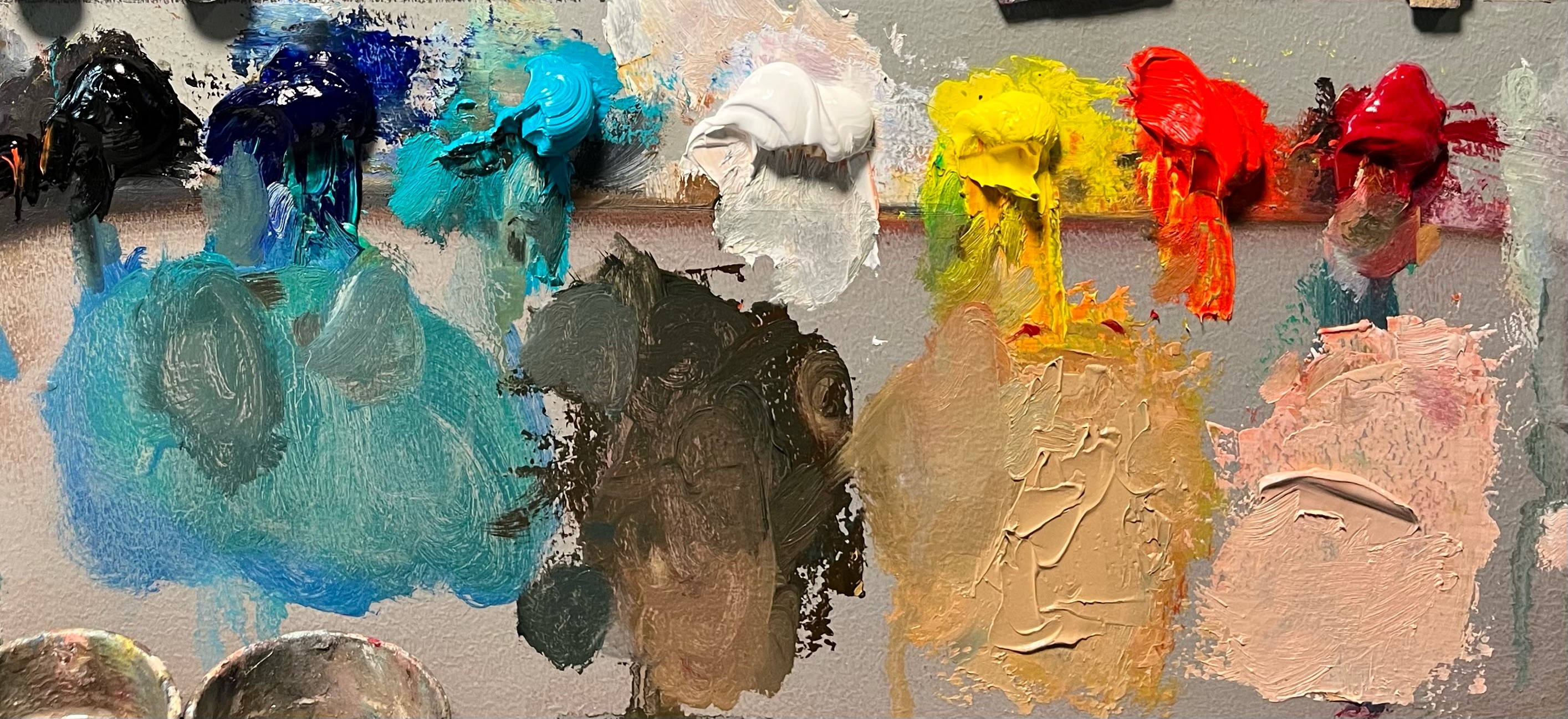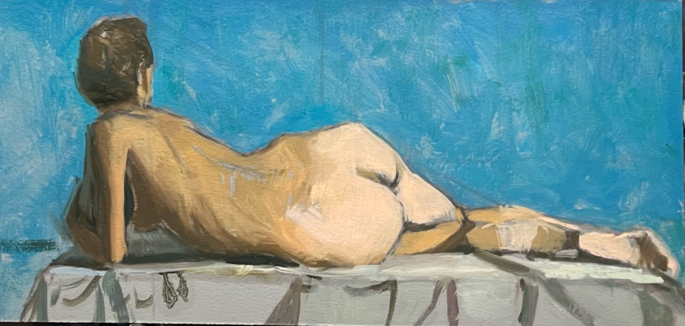 Drawing inspiration from Euan Uglow we experimented with changing the color of the background in the painting We talked about how changing the value, hue and chroma changes what we focus on in the painting.